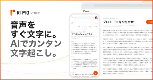 「Rimo Voice」はパソコンやスマートフォンのブラウザを使った録音もしくは既存のデータをアップロードすると、AI(人工知能)が背景雑音を除外し、文字起こしデータを作成する。会議の議事録や打ち合わせの記録、取材内容の文字起こしなどでの利用を想定し、これまで人力に頼っていた文字起こし業務の効率化が見込める。
