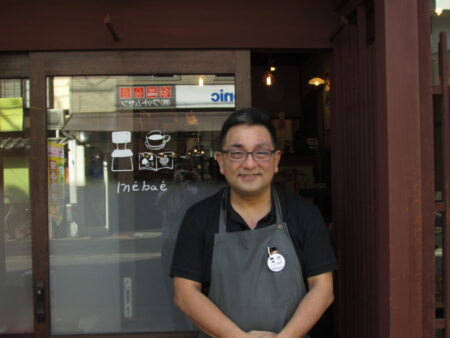 新しいビジネスモデルに挑戦する洞本氏(絵本カフェめばえ前)