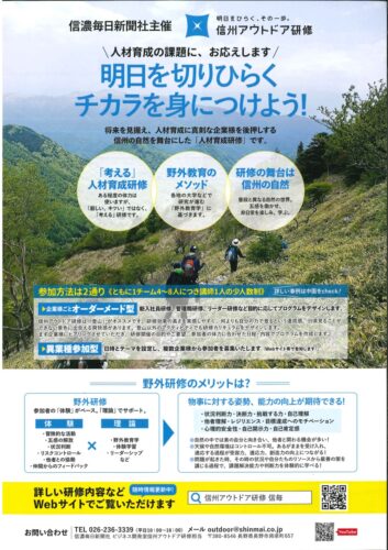「信州アウトドア研修」の企業向けパンフレット