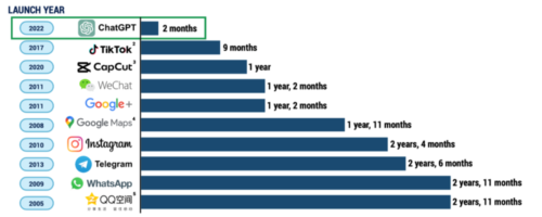 サービス開始後2カ月後の1月に月間利用者1億人に到達した「ChatGPT」