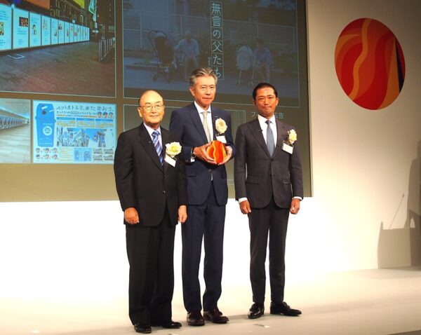 左から 広告電通賞審議会・三村会長、サントリーホールディングス・鳥井副社長、電通・佐野社長