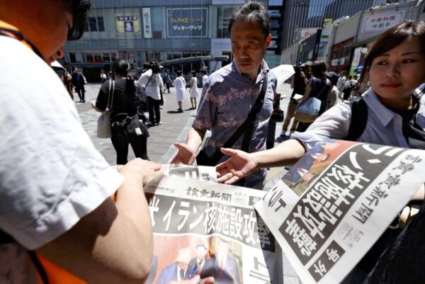 米国のトランプ大統領がイランの核施設への攻撃を発表したことを受け、読売新聞は6月22日昼、号外約1万部を発行し、東京や大阪、福岡で配布した=写真。東京・JR有楽町駅前では、通行人らが次々と号外を手にとって見入っていた。