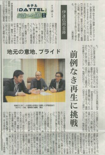 「地元のためにこんなに尽力してくれる銀行があるんだ!」と感銘を受けた記事。閉鎖される前からこのホテルのことをよく知っている方が引き続き再生に尽力されたこともあるが、厳しい意見がある中、また前例がない中でそれに屈することなく地域の皆さんと繋がりを持ちながら再生へと導くストーリーはとてもドラマティックで読んでいてワクワクした。再生したホテルのこれからや地域のその後の様子にも注目したい。【横川正紀】