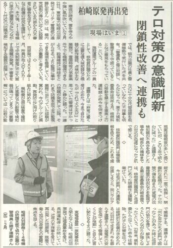 長期運転停止中の柏崎原発の再出発をテーマに、現場で働く「人」に注目したシリーズ企画。高校3年の時に職場見学したことをきっかけに入社した地元出身の作業員。広報担当として地域との双方のコミュニケーションを重視する刈羽村出身者。福島第一原発の事故の際には、現場の事故収束に当たっていた現所長――。20代から60代まで幅広く取材していることに好感が持てた。