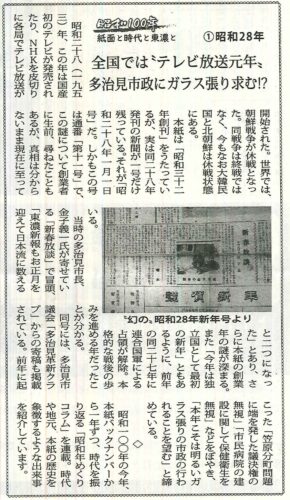 昭和100年に当たる2025年、同紙のバックナンバーから1年ずつ、時代を振り返 る「昭和年めくりコラム」を掲載。時代や地元、同紙の歴史を象徴するような出来事を毎号紹介している。