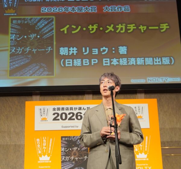 NPO法人本屋大賞実行委員会による2026年「本屋大賞」の発表会が4月9日、東京・港区の明治記念館で開かれ、朝井リョウ氏の『イン・ザ・メガチャーチ』(日経BP 日本経済新聞出版)が大賞に輝いた。日経BPによると、同書は現在17刷47万部を突破している。
