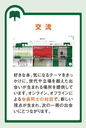 「ほんのもり」では、著名人によるおすすめ本やインタビュー動画の視聴、会員同士の交流、トークイベントや読書会への参加、私設図書室「ほんのもり 駒込本家」の利用など、オンラインとリアルを横断した多様な読書体験を提供しています。