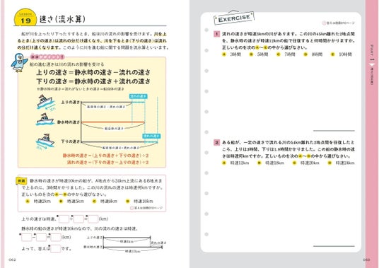 ▲左ページに解説、右ページが演習問題の構成で、1テーマが見開きで完結。問題集を買い足す必要がないから、これ1冊でOK!(『SPI3をひとつひとつわかりやすく。』より) ※『SPI3』『一般常識と時事問題』のみ