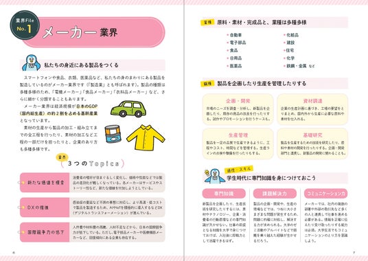 主な業種と売上規模が一目瞭然。各業界の概要や職種、適性・スキルをわかりやすくまとめました。これを読めば志望動機をさらに深掘りできる!