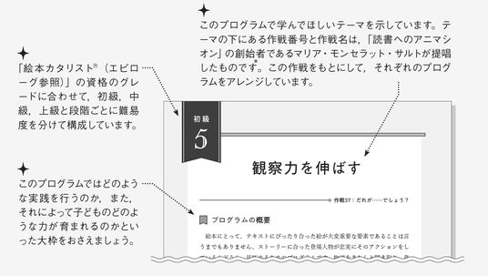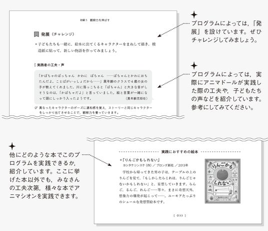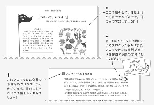 本書『絵本で実践! アニマシオン:子どもの力を引き出す26のプログラム』はサルトの著書『読書へのアニマシオン―― 75の作戦』(マリア・モンセラット・サルト,宇野和美(訳),柏書房,2001年)の作戦をベースに,読書を通じて対話する力,自ら考える力,自分を表現する力など,子どもの様々な力を引き出すアニマシオンの実践法を解説した一冊となっています。