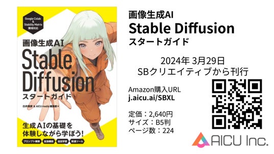 「つくる人をつくる」デジタルクリエーションの最前線をいく、デジタルハリウッド大学発の米国スタートアップ「AICU Inc.」は、この度、画像生成AIの革新的技術「Stable Diffusion」を徹底解説した教科書『画像生成AI Stable Diffusion スタートガイド』をリリースしました。2024年3月29日にSBクリエイティブより刊行される本書は、AIによる画像生成技術に関心を持つすべての人々に、基礎から応用までを段階的に学べる一冊として開発されました。