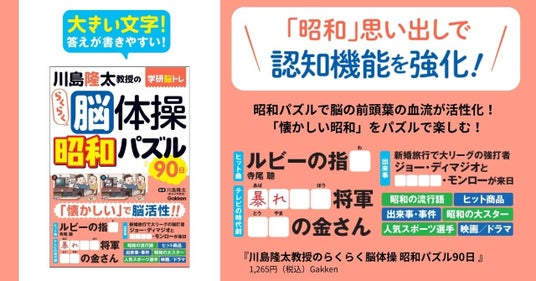 ◆脳の前頭葉の血流が活性化! 脳機能研究の第一人者・川島隆太東北大学教授が監修した人気シリーズ「学研脳トレ らくらく脳体操」から【昭和パズル】が初登場