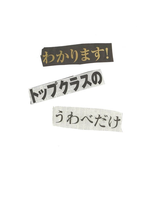 ・ついつい「は」や「を」など「てにをは」を一字だけ切り取って使いたくなるが、そこはグッと我慢。必ず3枚の切り抜きで作る。