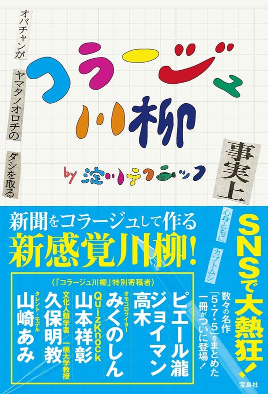 本書では、Xに投稿されたコラージュ川柳の中から厳選した65作品とともに、ピエール瀧さん、ジョイマン高木さんなど各界の著名人からの寄稿や、五月女ケイ子さんら人気イラストレーターのコラボイラストも掲載しています。