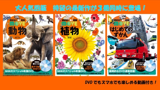 590万部突破の「講談社の動く図鑑MOVE」は、従来の調べるだけの標本図鑑とは異なるコンセプトで作られた、唯一無二の図鑑シリーズです。世界の一流カメラマンによる大迫力の生態写真、NHKの貴重映像がふんだんに収録されたDVD、第一線で活躍する研究者による解説など、好奇心を刺激し、自ら学ぶ力へと導きます。また、ストリーミングでスマホやタブレットでもDVDの映像が見られるので、お出かけにも最適です。