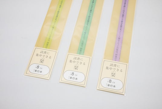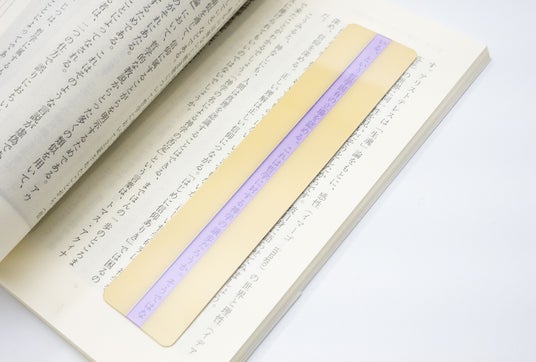 読書の補助道具である「読書に集中できる栞」は、読みたい行の前後を隠すことで文章を一行ずつ集中して読むことができる栞です。