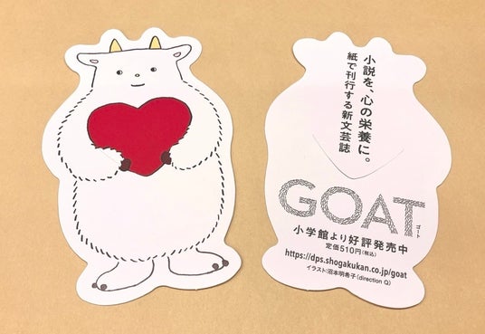 12月6日発売の小学館文庫に、表紙にいる“ゴートくん”の特製しおりを作成し、封入しています。ゴートくんが手に持っているハートは紙に挟める作りになっているので、お気に入りのページに挟んでみるなど、読書のおともに活用していただけるとうれしいです!