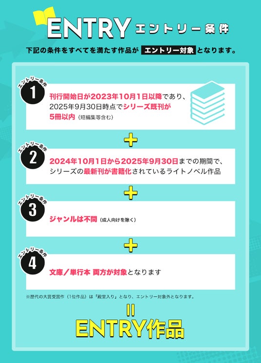 - 刊行開始日が2023年10月1日以降であり、2025年9月30日時点でシリーズ既刊が5冊以内(短編集等含む)