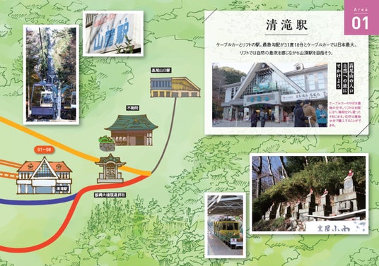 麓にあるケーブルカーの清滝駅近くには不動院があり、そこで、巡拝のための案内図を手に入れることができる。それを持って巡っていくことになるのだが、それぞれの大師がある場所は離れていて、見つけにくいこともある。本書は、この巡拝について詳しくガイドした初めての本だ。