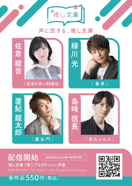 置鮎龍太郎、佐倉綾音、島崎信長、緑川光が参戦。4月20日より名作朗読を配信開始!