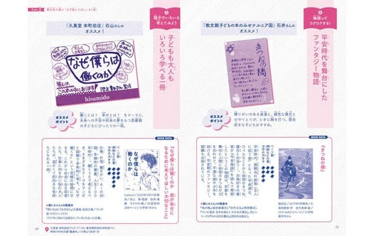 まるで書店さんを歩いているかのような、お手製POPと一緒に、おすすめポイントや本の簡単なあらすじなどを紹介。