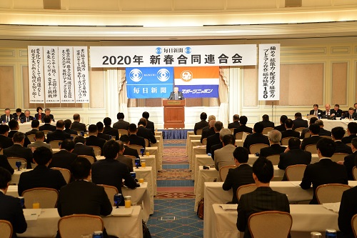 毎日新聞大阪本社管内の専売店がつくる4つの連合会が集う「新春合同連合会」が1月15日、大阪市北区の「ザ・リッツ・カール…続き