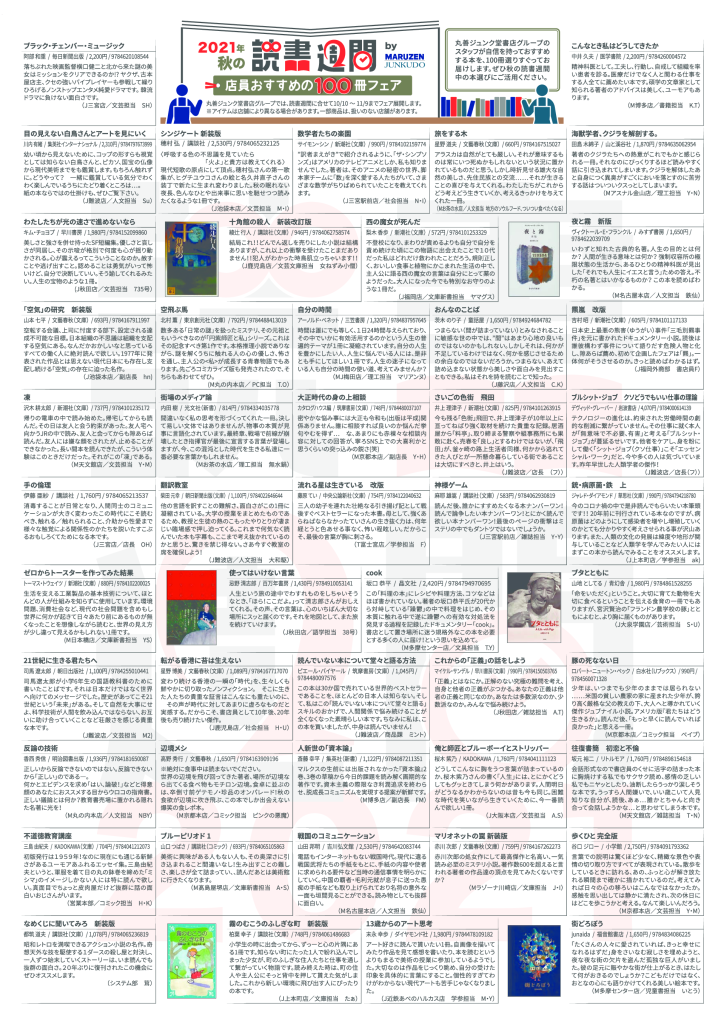 丸善ジュンク堂書店は、秋の読書週間に合わせて全国の同グループ従業員がおすすめする本を集めた「店員おすすめの100冊」フ…続き