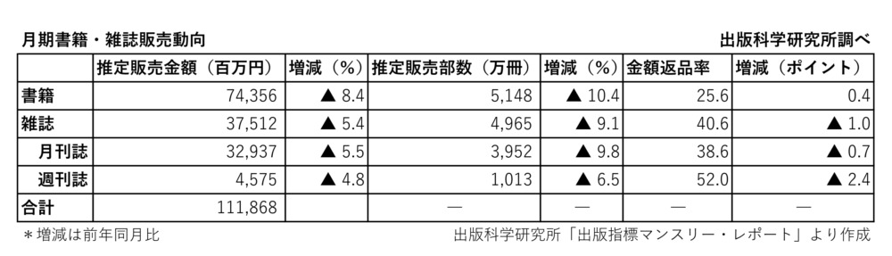 出版科研 3月期書籍・雑誌販売額7.4%減 2026年の出足厳しく